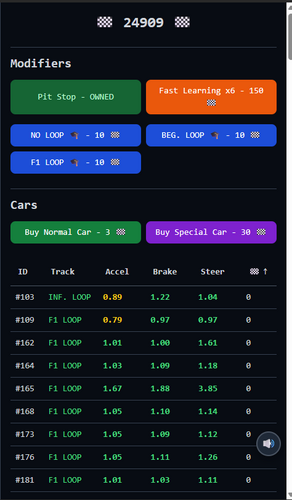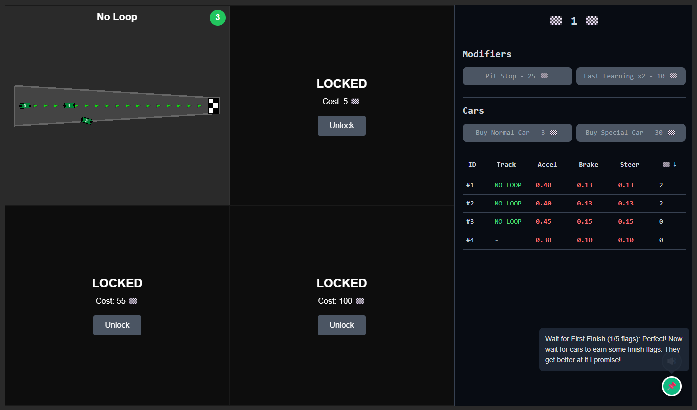 Tiny incremental game about training cars to complete tracks that are getting harder and harder